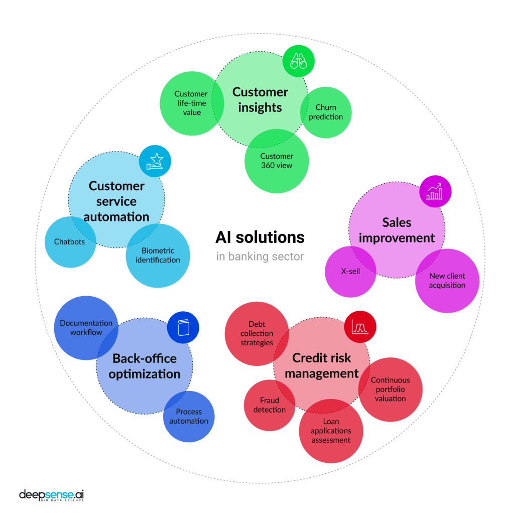Apart from credit risk modelling, there is already an impressive range of use cases for AI in banking, covering everything from customer service to back-office operations. Here is a list of the most common AI solutions in the banking sector: