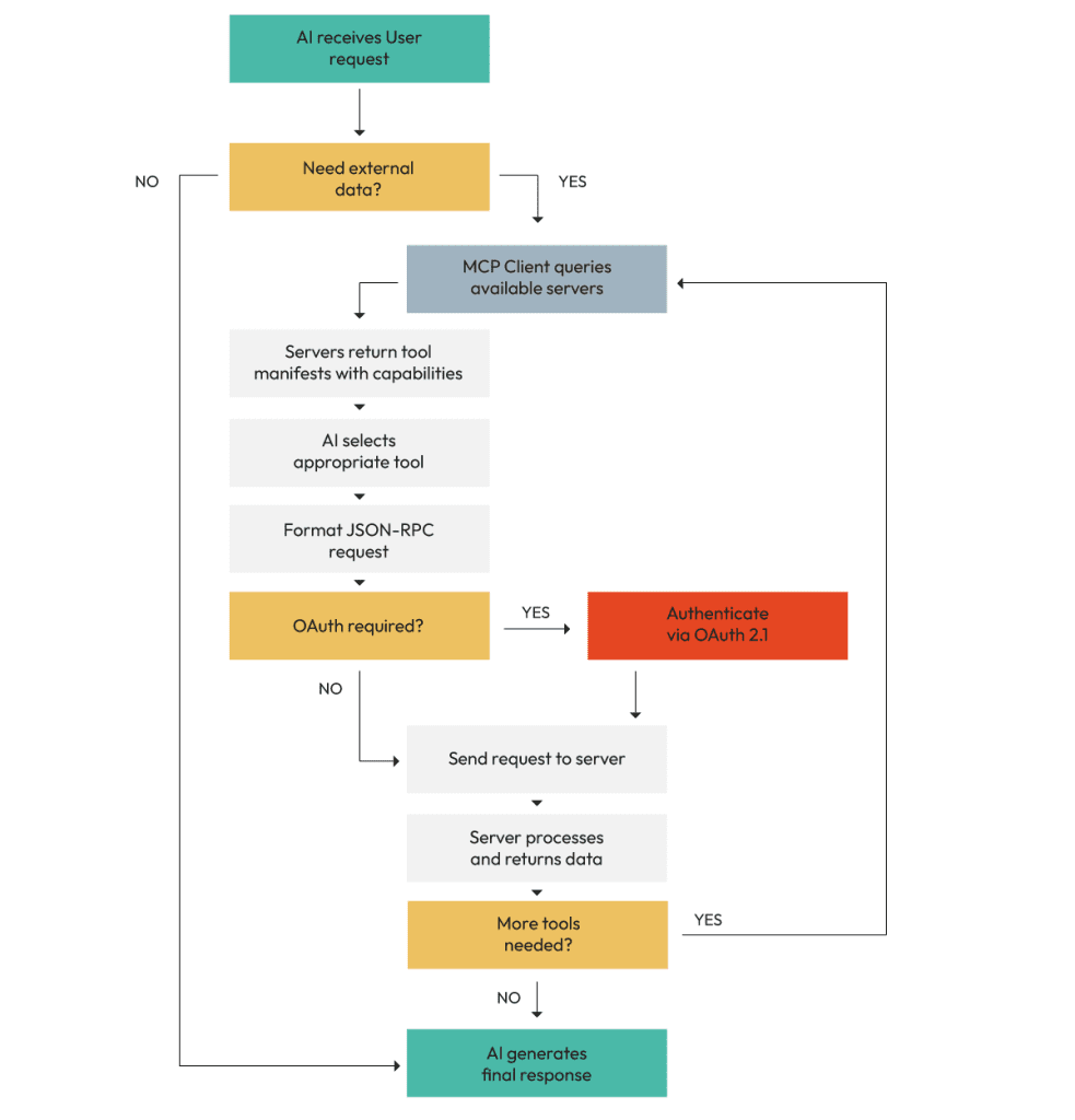 If you are building AI applications now, MCP is a practical choice for durability. Implement integrations once and reuse them across providers that support the protocol, even as new models ship. It also reduces platform-specific glue so codebases stay smaller and releases move faster. Security benefits from a standard OAuth 2.1 model and clear trust boundaries between the host and the server, helping teams handle sensitive data without ad hoc processes. With major vendors on board and an expanding library of servers, you can often start from an existing connector rather than writing one from scratch.