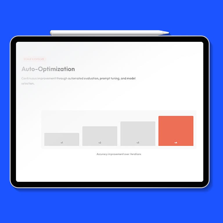 Collect user feedback, run hyperparameter tuning, benchmark cost against quality – systematically, in production. Every deployment cycle makes the system better.